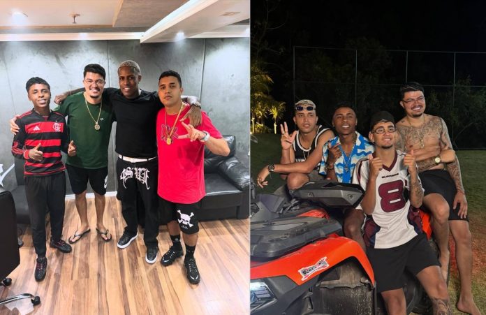 Davi Dogdog com MC Meno K, DJ Japa NK e MC IG (foto 1) e com MC Meno K, MC Jacaré e DJ Japa NK (foto 2)