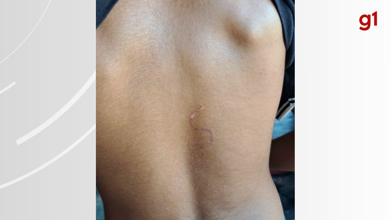 Nas imagens cedidas pela família é possível ver a marca do ferro nas costas do adolescente, formando um número 5 de ponta-cabeça.