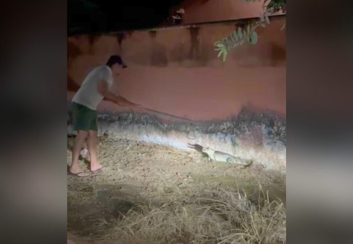 Jacaré surge no portão de casa e deixa moradora ‘apavorada’ no interior do Tocantins; VÍDEO