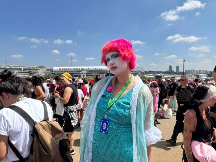 Na manhã do segundo dia de Lollapalooza, em São Paulo, a fila antes da abertura dos portões, que registrou correria às 11h, virou uma extensão do próprio festival. Muito antes do primeiro show, fãs já se reuniam em frente ao Autódromo de Interlagos com maquiagens elaboradas, roupas chamativas e uma estética que misturava pop, teatralidade e referências diretas à cultura drag.