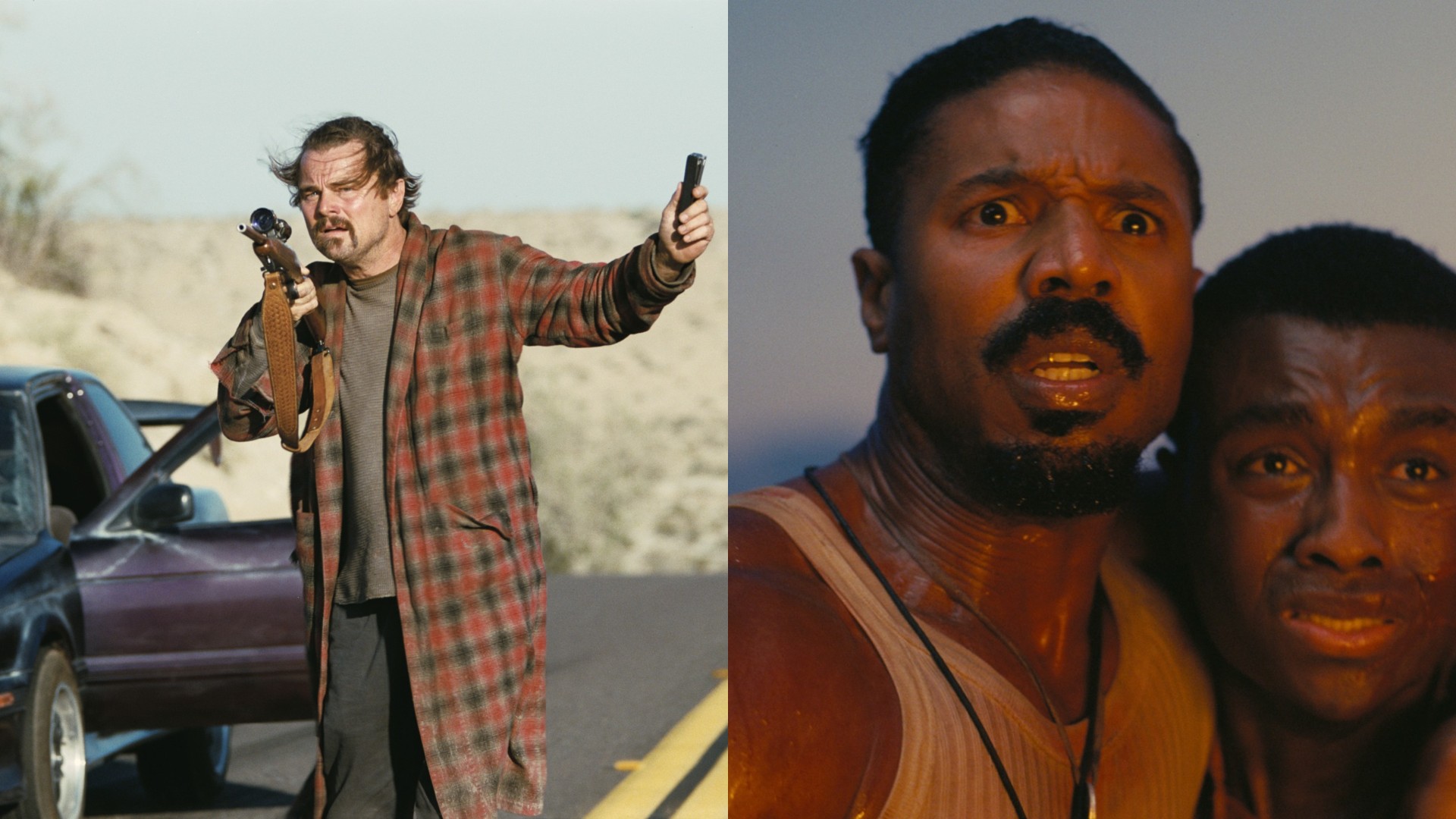 Cenas de ‘Uma batalha após a outra’ (à esq.) e ‘Pecadores’ (à dir.)